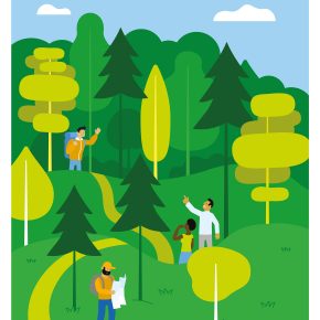 illustration for the Blue Pages Fly Responsibly section for KLM Holland Herald. Sustainable aviation fuel (SAF) that is made from waste and residues.