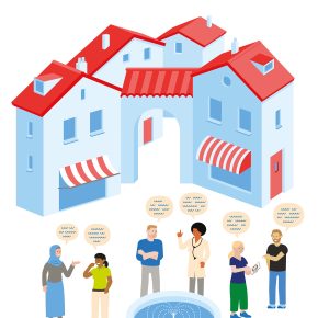 Series of illustrations for Mogelijk Real Estate Financing and Commercial Mortgages: 1) Differences between the Belgian and Dutch real estate markets 2) Business complex for SMEs 3) Real estate investors angry about temporary box 3 tax regulations 4) New cash flows