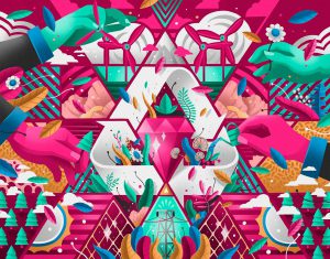 The shopping mall Marineda City decided to create an art route with murals inside the center itself. The initiative sought to give visibility to local talent, promote it and at the same time decorate the center itself. The commission was to visualise two concepts, sustainability and the world of fashion.
