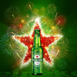 Heineken Christmas Festive 3D premium, energetic, festive celebration illustration.
